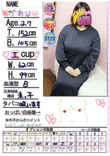 | かおり(27歳) T152 B105(I) W62 H99 |
