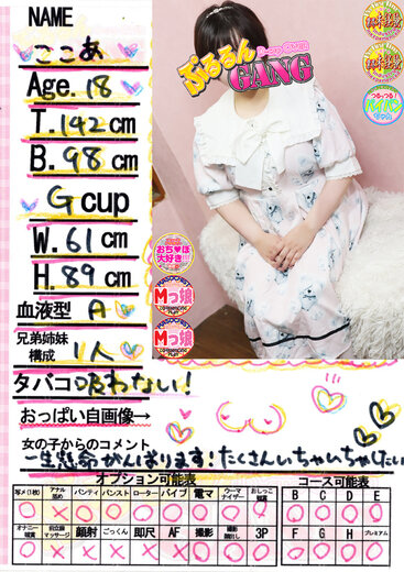 | ここあ(18歳) T142 B98(G) W61 H89 |