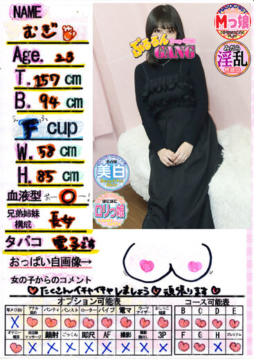 | むぎ(23歳) T157 B94(F) W58 H85 |