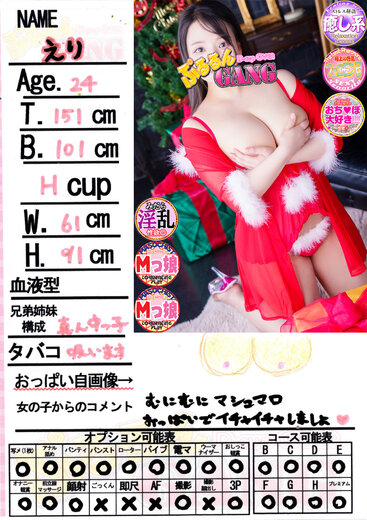 | えり(24歳) T151 B101(H) W61 H91 |