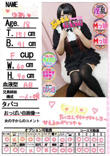 | ゆあ(18歳) T151 B91(F) W60 H90 |