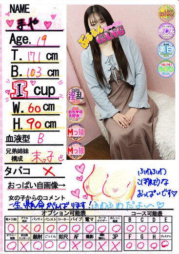 | ☆★完全業界未経験★☆※男性経験ない処女の女の子となります。激アツ!超アツい!「まや」ちゃんの嬉しい乳店です♪ルックスは清楚系♪性格はドが付くほどの真面目な女の子です!なぜこんな子がこの業界に!?と思いましたが、超エロいことに興味津々です!「エッチなことがどうしてもしたくて・・・//」とエッチなことがしたくて入店してくれました!ドMらしく、女の子が責められる系のAVばかり見て「めちゃくちゃにされることを想像して、面接に来るまでの電車で濡れちゃってました・・//」というエピソードまで教えてくれました!誰にも触られたことのない純白のIカップ♪めちゃくちゃにするのはアナタです!お尻とかも興味あるらしく、将来的にはAFまで解禁!?会えば絶対に満足することをお約束致します!こんな女の子と会えるプラチナチケットは100年に一度の奇跡かもしれません!特大ダイヤモンド級の「まや」ちゃんと是非楽しいお遊びをお楽しみ下さいm(_ _)m 【デリバリー】○ 【自宅】× 【アレルギー】なし |