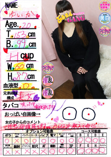 くっついただけでもパンツがとんでもないことになっちゃう「ゆいか」ちゃんの嬉しい乳店です♪ルックスは清楚系で、性格は非常にハキハキ明るい女の子です!おっぱいはぷるぷるHカップ!超濡れやすいらしく、なんとくっついただけでパンツがビショビショに・・//お客様を責めることも大好きで、極上フェラは超気持ちいいことに定評があるとのことで、フェラ好きの皆様にはオススメの女の子となります!お尻も開発中らしく近日AFも可能になる日も近いのではないでしょうか!ぜひ「ゆいか」ちゃんと楽しいお遊びをお楽しみくださいm(_ _)m