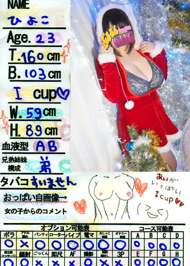 目鼻立ちの整った可愛いベビーフェイス!! 目の前にあるのに信じられない程の 超絶柔らかIカップ美爆乳!! 『嘘だろッ!?』と叫びたくなる とびっきりの柔らか銀河系☆Icup爆乳 思わず飛びつきパフパフしたくなること請け合い! いいんです!全てを包み込む優しさが 彼女と彼女のIカップにはあるんです! そしてもちろんベビーフェイスと美爆乳だけの女性ではありません。 極上バスト、超エッチ、性格良し♪走攻守揃った極上【ひよこ】ちゃんです♪可愛らしい声も魅力的で、感度も抜群なんだとか♪ 丁寧に責めると、思わずこぼれる甘い声...イチャイチャと過ごす、まるで恋人同士になったような甘いひととき...お客様が羨ましいです(*ノωノ)お問合せお待ちしておりますね☆彡