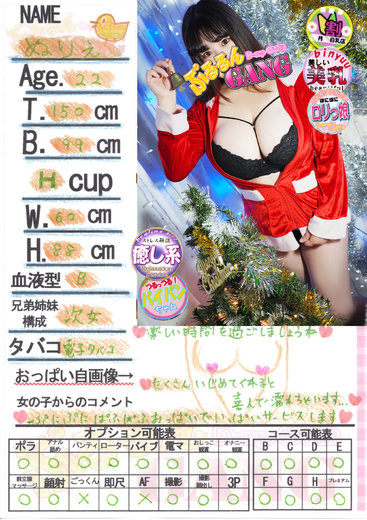 小さくてロリっ娘「ぬりえ」ちゃんの嬉しい乳店です♪礼儀正しく、ニコニコしていて明るいのがとても好感が持てるそんな「ぬりえ」ちゃんです!そんな「ぬりえ」ちゃんですが、とめどない性欲が溢れんばかりに止まりません//ここに来る途中の電車で痴漢をされ、いつもは一人でするばかり、男の人に触られると「やっぱり気持ちいい・・・」と受け入れてしまい興奮が冷めやらぬまま、駅のトイレでそのまま「一人でしちゃってから面接に来ちゃいました//」という逸話をしてくれました//キスが大好きで、性感帯の耳、乳首をいっぱい舐めていぢめて倒してください//とのことで責めごたえも超抜群♪責めに、敏感BODYが反応して超大洪水状態//超エッチな時間を過ごせることでしょう♪是非エロく濃厚なお時間を「ぬりえ」ちゃんと一緒にお過ごしくださいませ♪