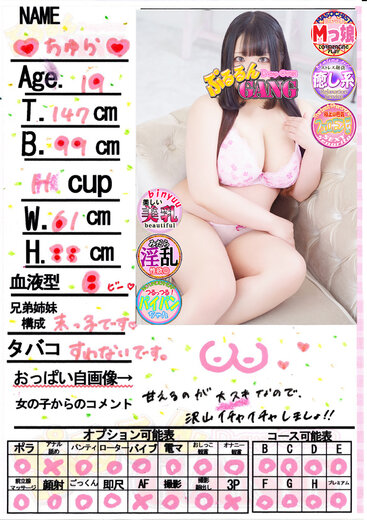 プリプリデカ乳輪はドスケベの証♪癒し系オーラ爆発なエッチなHカップ女子『ちゅら』ちゃん乳店です♪♪沖縄から来た南国育ちのドスケベ女子!おっとり癒し系な性格とは裏腹に1日に10回もオナニーしちゃうこともある超超超えちえち娘♪ぷりっぷりのおっきめな乳輪は吸い付いて舐めまわしたくなること確定!!!優しくされると濡れてしまうというチョロ属性も彼女の魅力♪キスし始めたら止まらなくなっちゃう『ちゅら』ちゃん♪興奮しすぎて自分からおねだりしちゃうかもしれませんので、是非ドスケベな彼女に身を任せてみてください♪♪