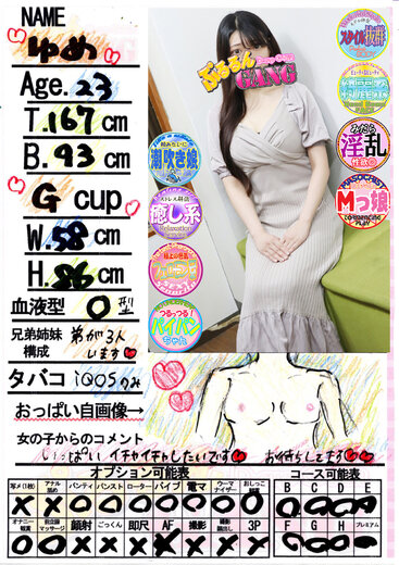 高身長の美しすぎるプロポーション♪長いつややかな黒髪の理想の大和撫子!!夢見ていた女性がここにいる!!「ゆめ」ちゃんの乳店です♪美しい!!第一印象にそう思って頂けます♪目元パッチリな顔立ちと所作のひとつひとつからも可愛さも溢れております。そして高身長にスラッとしたスレンダーボディと語らなくてはいけないポイントが多すぎるハイスペックな女性です!!そしてエロさも濃厚!!奉仕型の超ドMであり、敏感なおっぱいを責められたのなら無毛のアソコの奥から潮が溢れ出すほど感じやすい身体!!文句の付け所が1mmもない美女です!!是非ご堪能ください!!